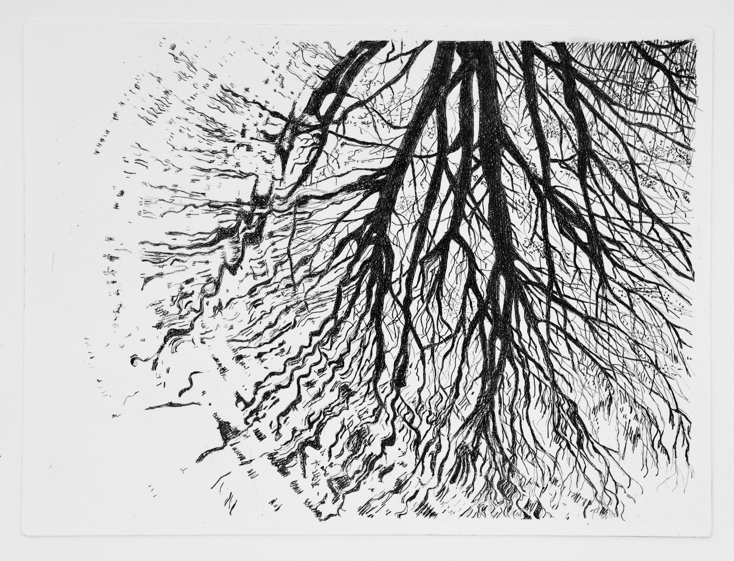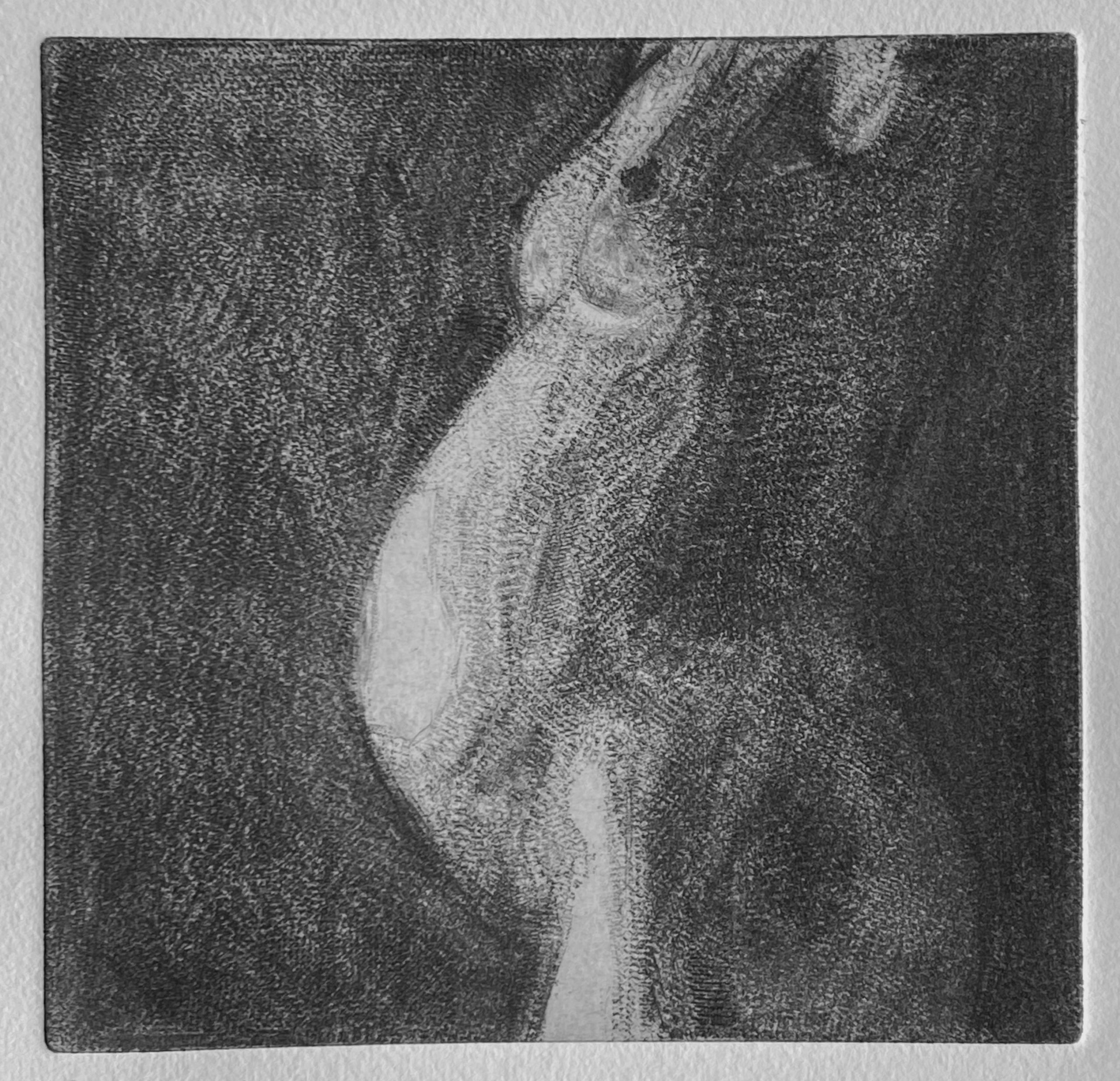 Steentje gooien en snel een foto maken. Met het etsen er achter gekomen dat massief zwart best ingewikkeld is. Daarna maar eens met Mezzotint gaan experimenteren...